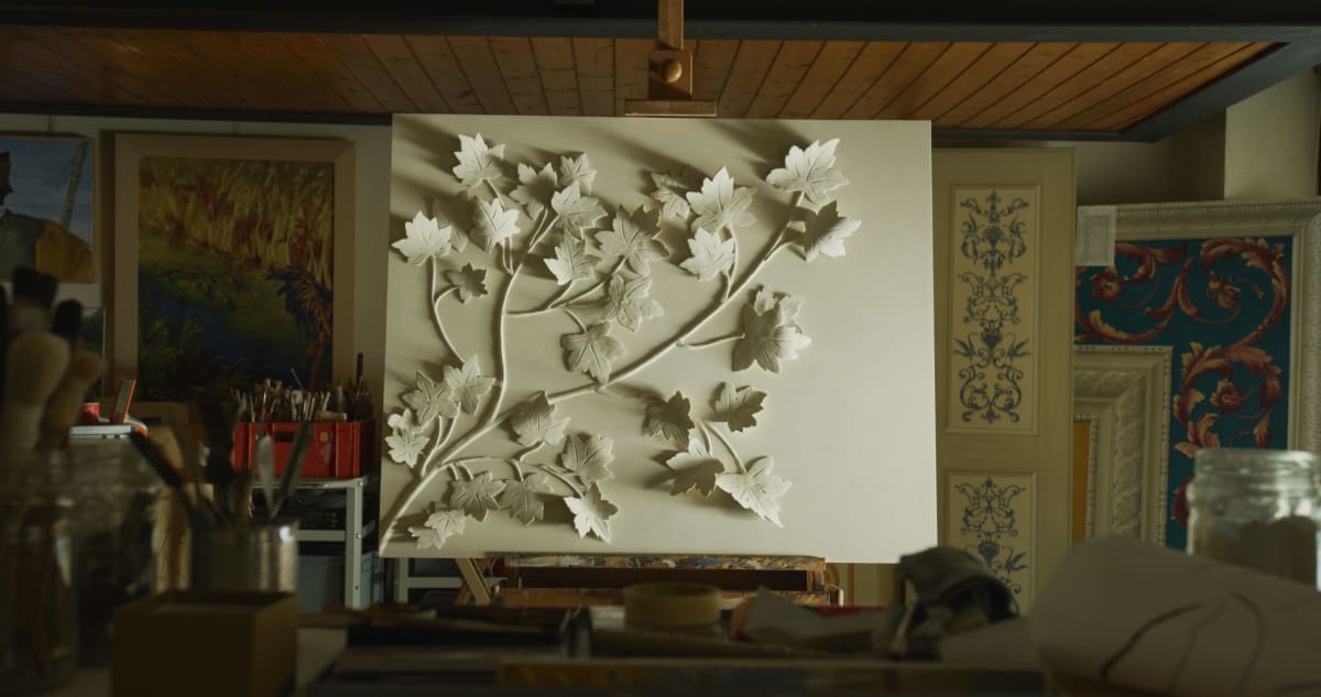 The stand will also feature a wall showcasing a completed bas-relief Gyps Scagliola design framed in gold leaf, so you can see the beautiful finish of these exquisite materials up close and personal.